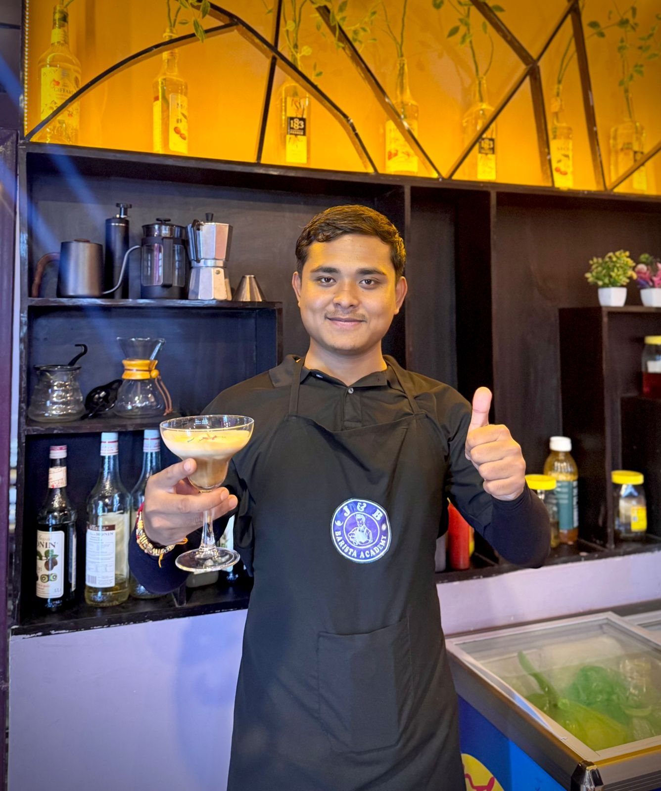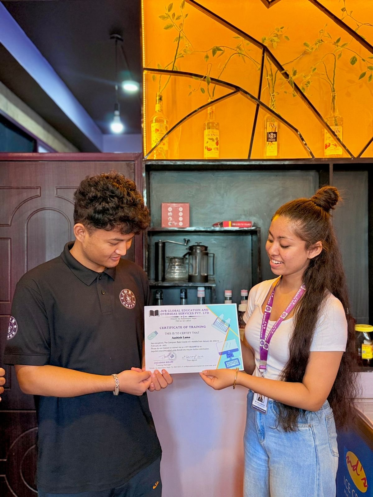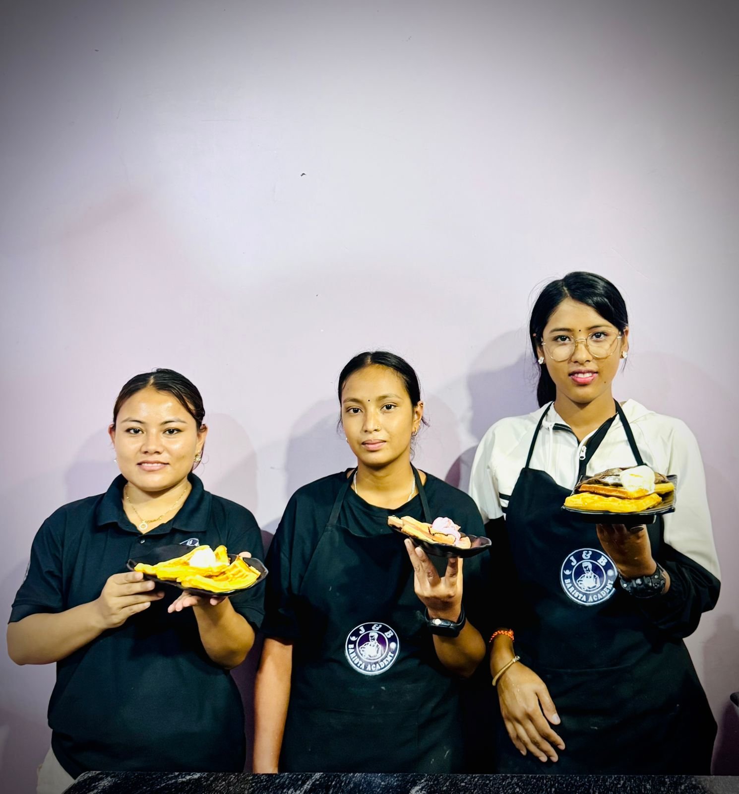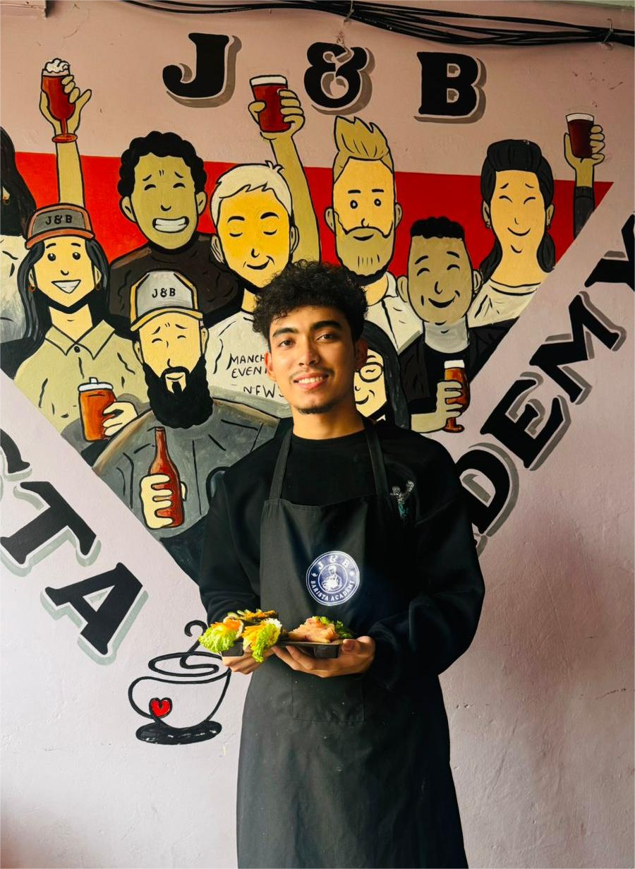 Our training team is led by Mr. Jagadish Bidari, a former Senior Supervisor at Qatar Airways and ex-Hotel Manager in Croatia, with extensive expertise in soft skills. Mr. Dipak Chhetri, a BHM graduate from the Academy of Culinary Arts, brings 5-star hotel experience from across Asia. Ms. Jamuna Chhetri, with over 8 years of professional barista training, is the Co-founder of J&B Coffee Lounge and an expert in advanced espresso techniques.